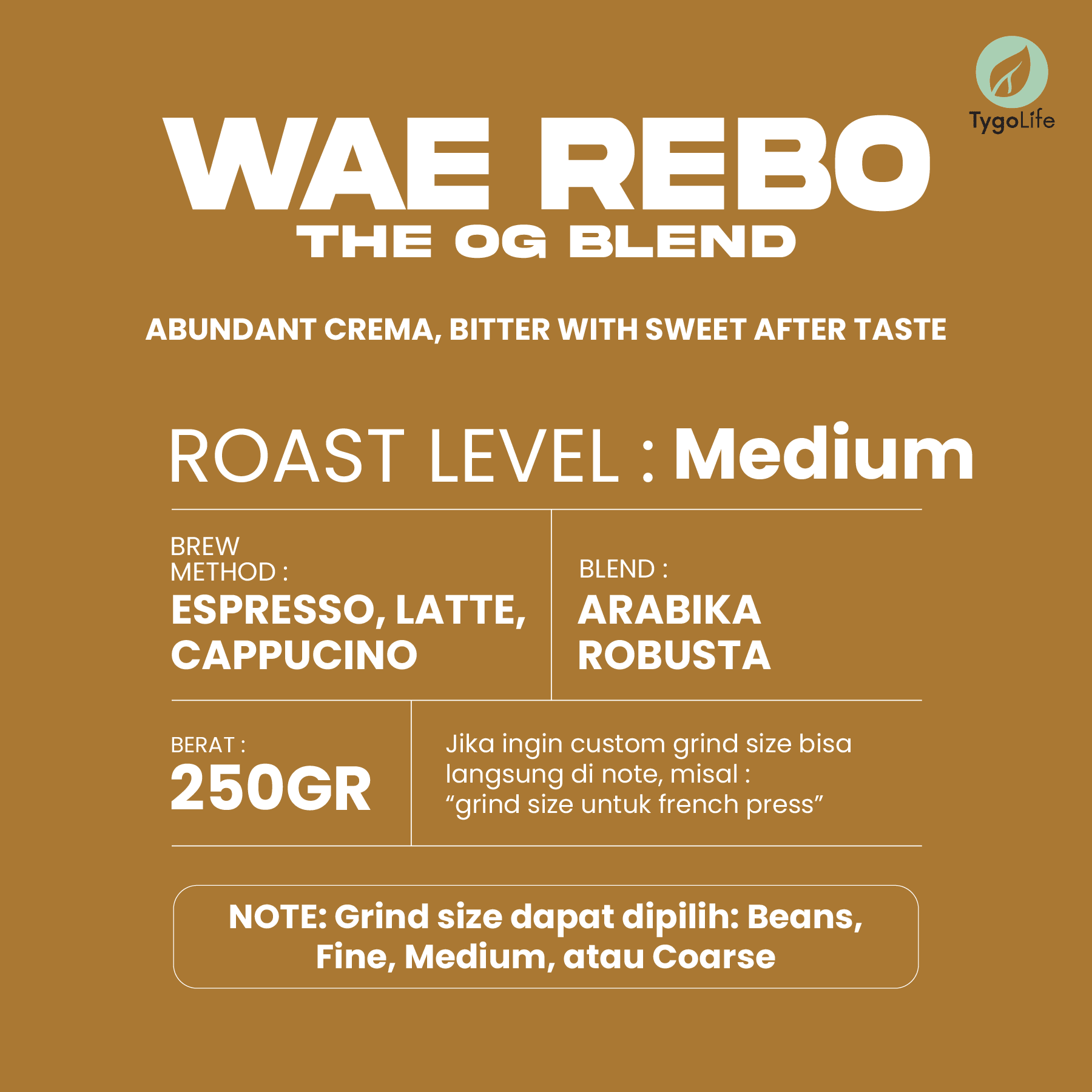 TYGO BEANS WAE REBO BIJI KOPI 250GR HOUSE BLEND ROBUSTA ARABIKA LOKAL BERKUALITAS ESPRESSO MANUAL BREW COFFEE BUBUK KOPI