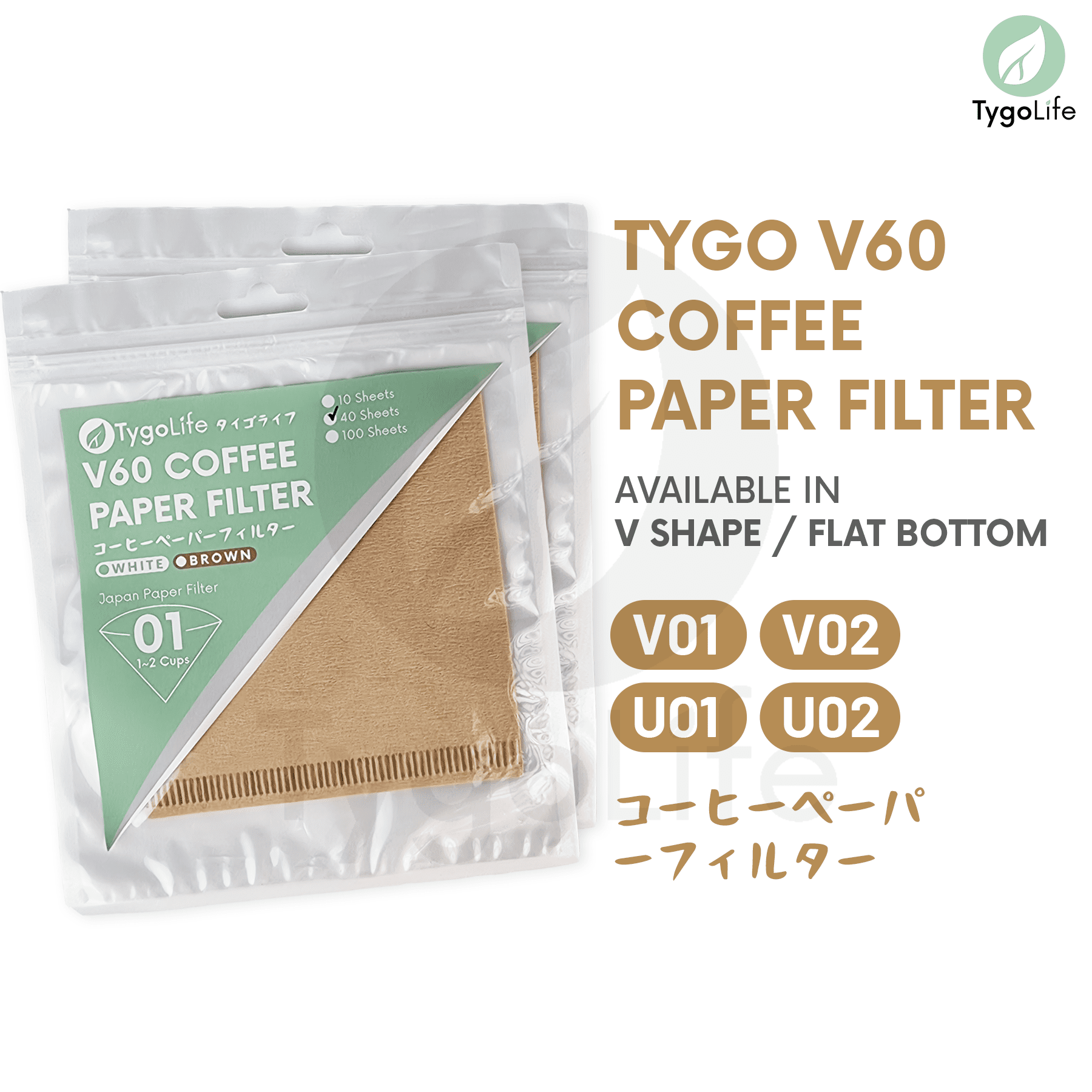 V01 atau V02 digunakan untuk dripper standar berbentuk V shape. Sedangkan U01 atau U02 digunakan untuk dripper standar dasar yang flat (flat bottom).