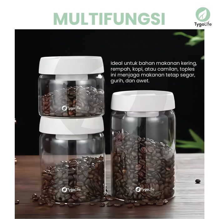 TYGO COVE VACUUM SEALED JAR TOPLES KACA VAKUM BIJI KOPI TEH BUMBU DAPUR