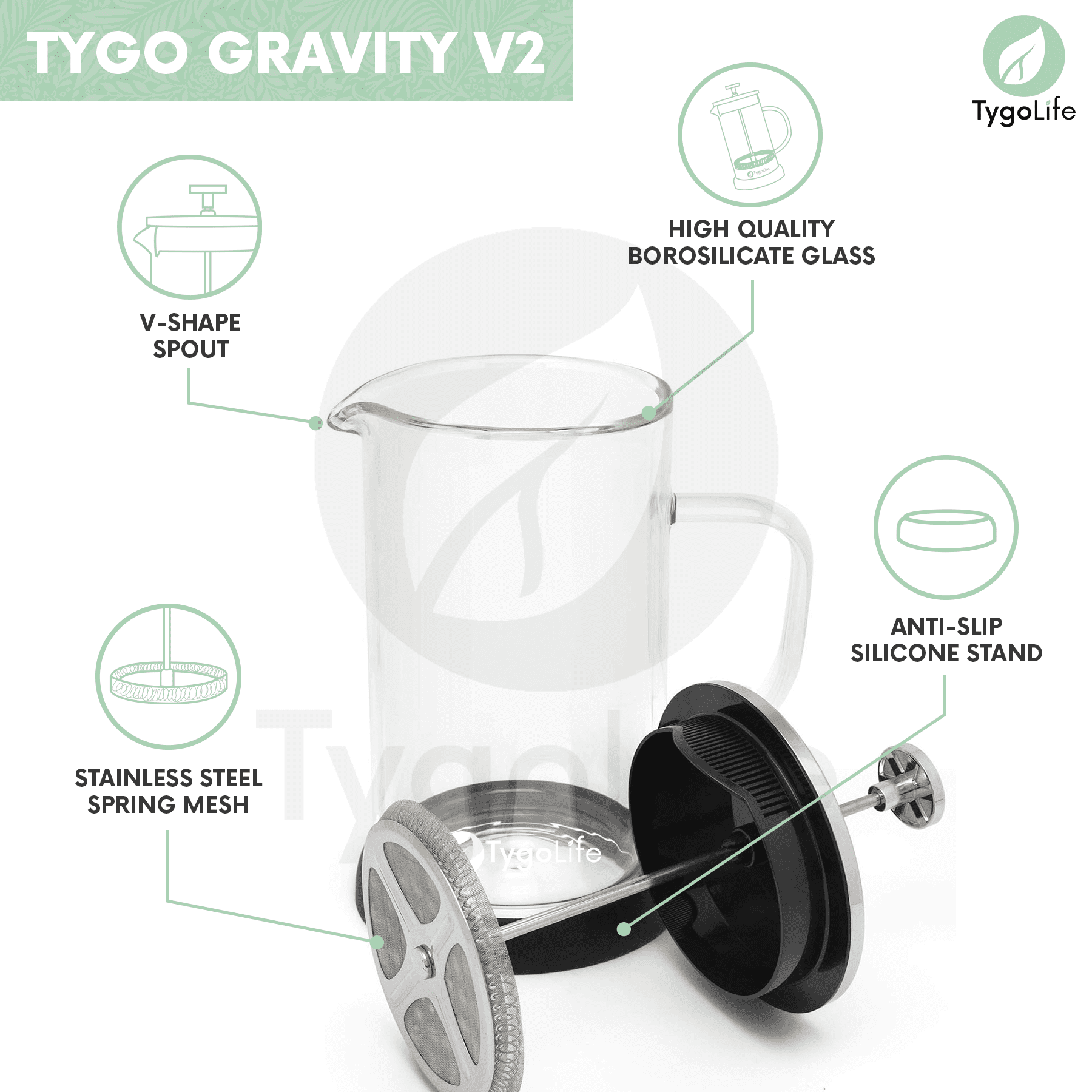 TYGO GRAVITY FRENCH PRESS COFFEE MAKER & MILK FROTHER NEW MODEL VERSION 2