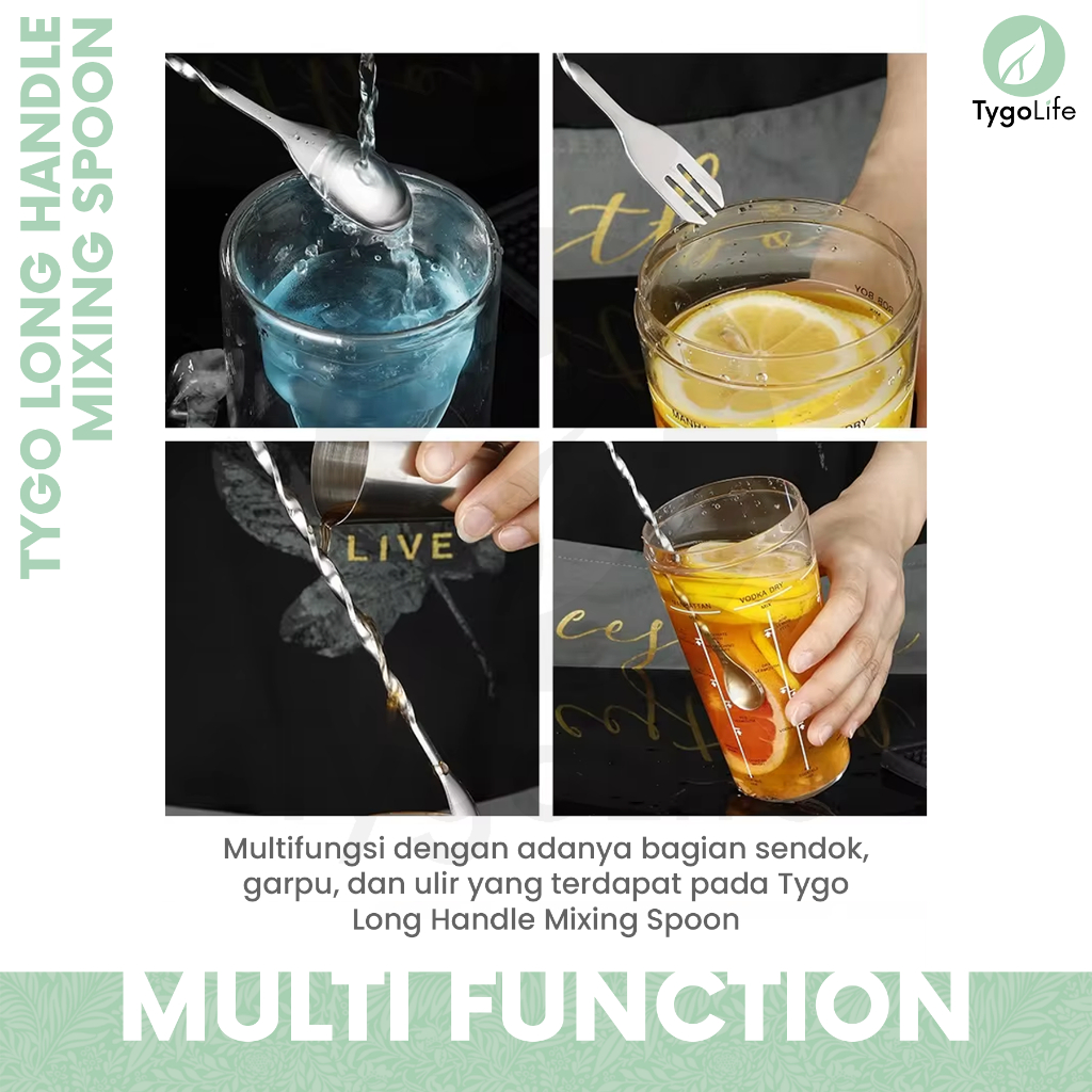 Fungsi utama yaitu sendok untuk mengaduk berbagai minuman, kopi, mocktail, cocktail, dan lainnya. Cocok untuk bartender bar, barista, dan pemakaian dirumah.