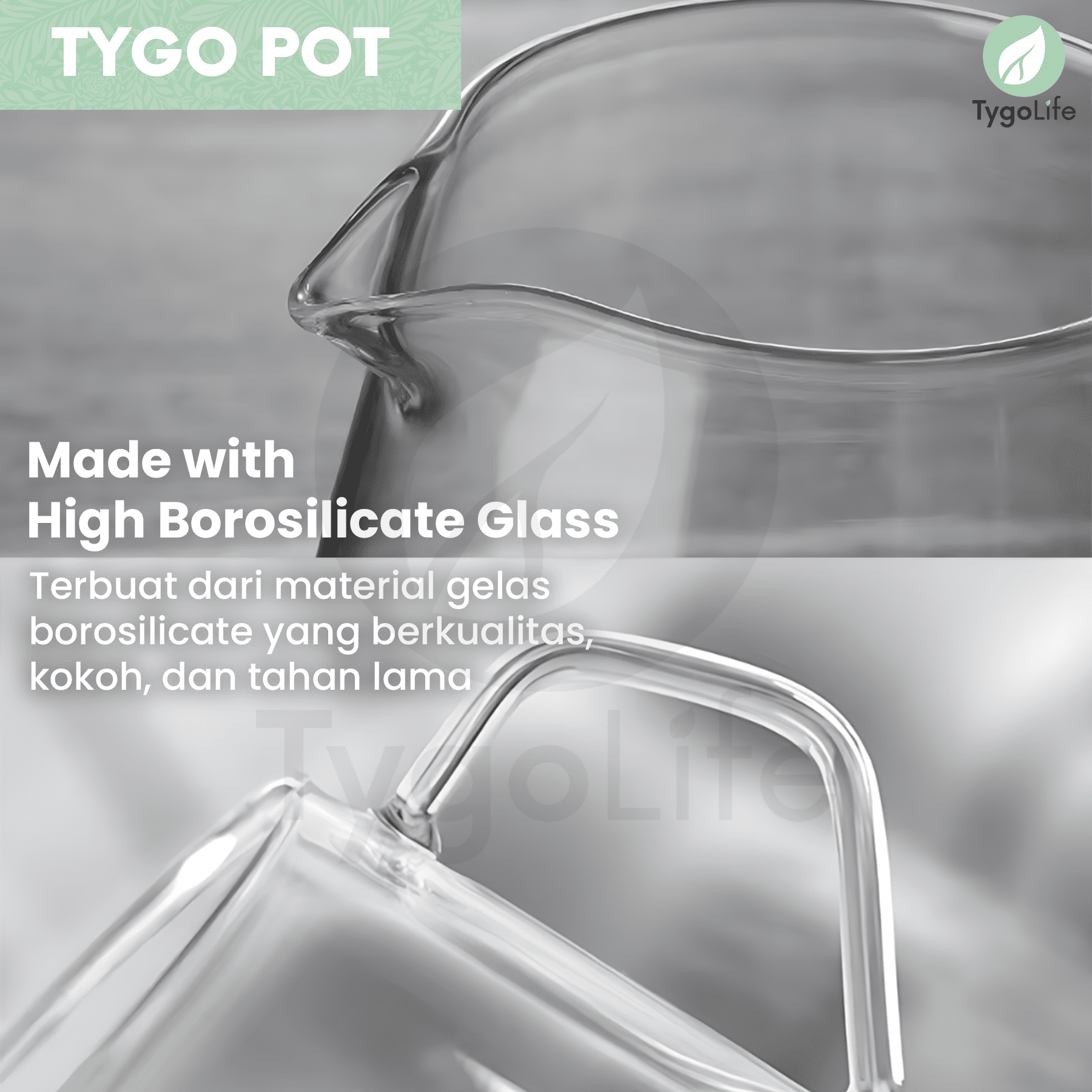 Tygo Pot Coffee Server terbuat dari material kaca borosilikat premium yang berkualitas tinggi, kokoh, tahan lama, dan tahan suhu panas maupun dingin hingga suhu -20°C – 150°C (bisa langsung dikompor api).