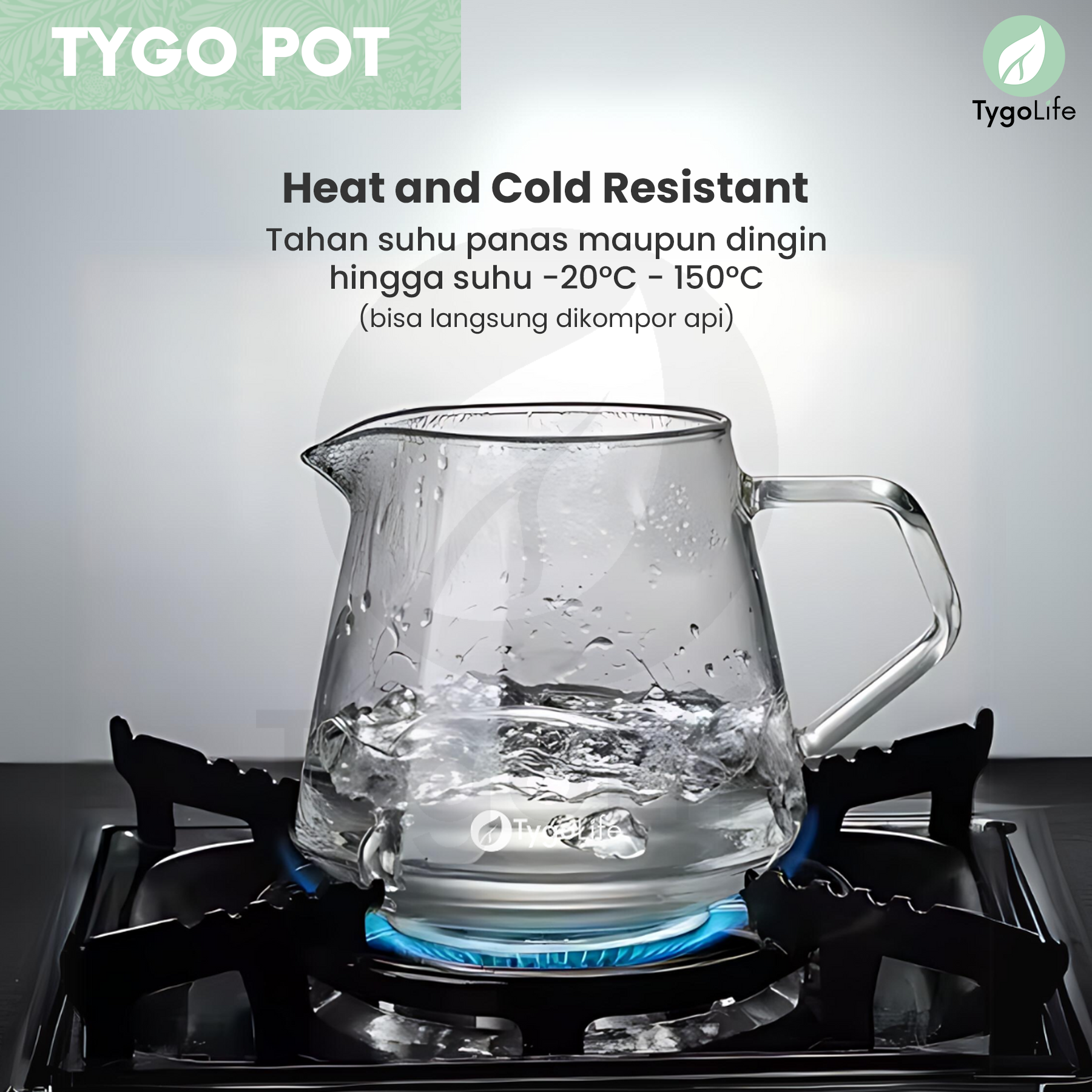 Tygo Pot Coffee Server terbuat dari material kaca borosilikat premium yang berkualitas tinggi, kokoh, tahan lama, dan tahan suhu panas maupun dingin hingga suhu -20°C – 150°C (bisa langsung dikompor api).