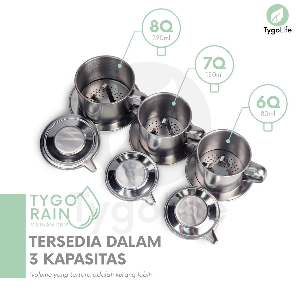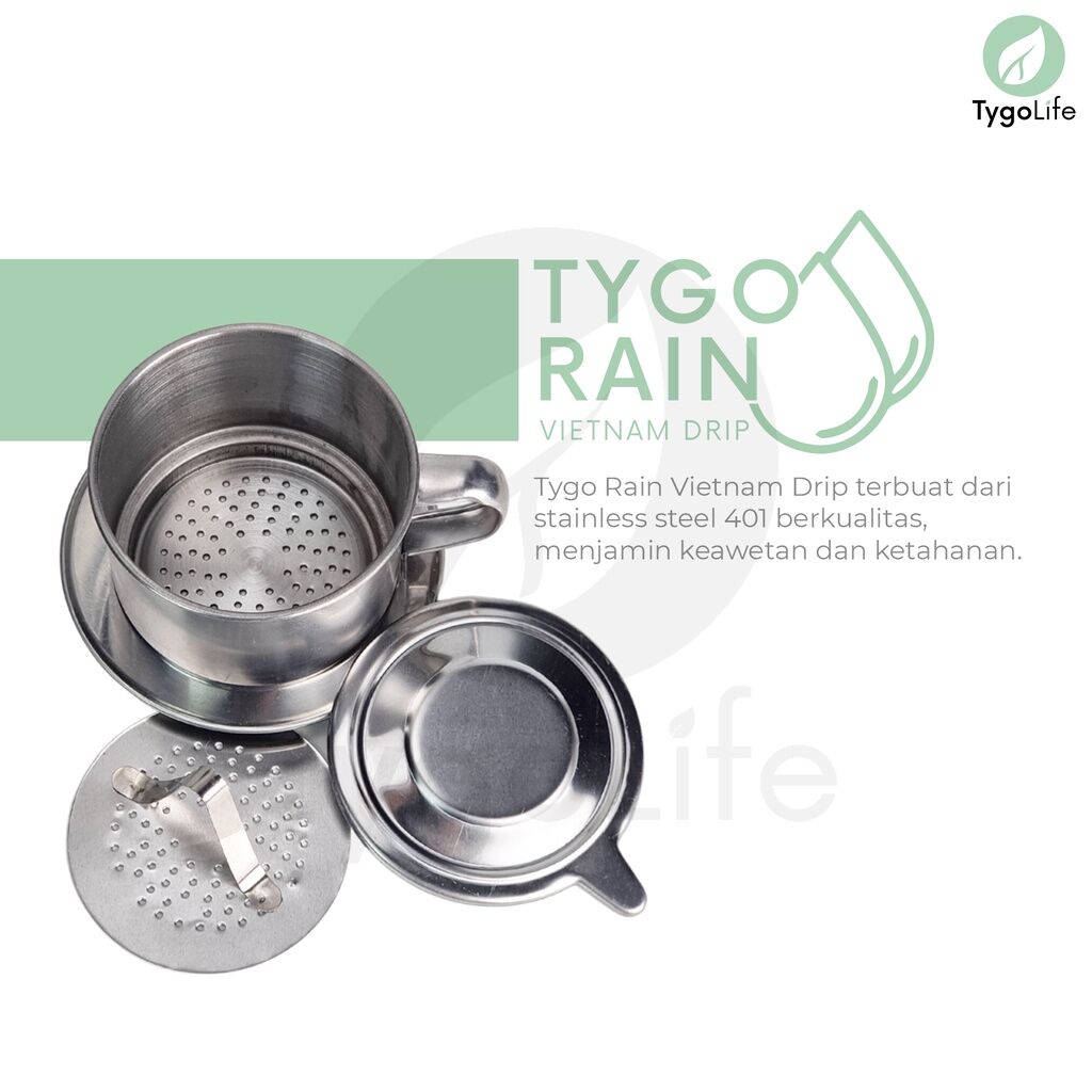 Tygo Rain Vietnam Drip terbuat dari stainless steel berkualitas, menjamin keawetan dan ketahanan. Tygo Rain menawarkan metode penyeduhan yang praktis dan mudah digunakan. Cukup letakkan filter di atas cangkir, tambahkan bubuk kopi, tuangkan air panas, dan saksikan seduhan aromatik yang perlahan menetes ke dalam cangkir bagaikan rintik hujan.