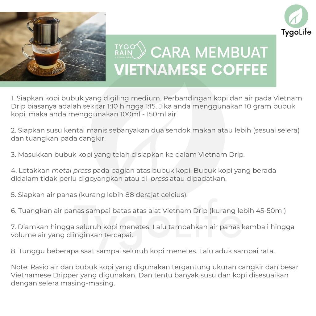 Perkenalkan Vietnam Drip dari Tygo Life, Tygo Rain Vietnam Drip. Solusi sempurna bagi para pecinta kopi yang menginginkan pengalaman kopi Vietnam yang kaya dan autentik. Tygo Rain Vietnam Drip adalah alat seduh kopi yang memungkinkan Anda menikmati rasa dan aroma kopi Vietnam tradisional di rumah Anda sendiri.