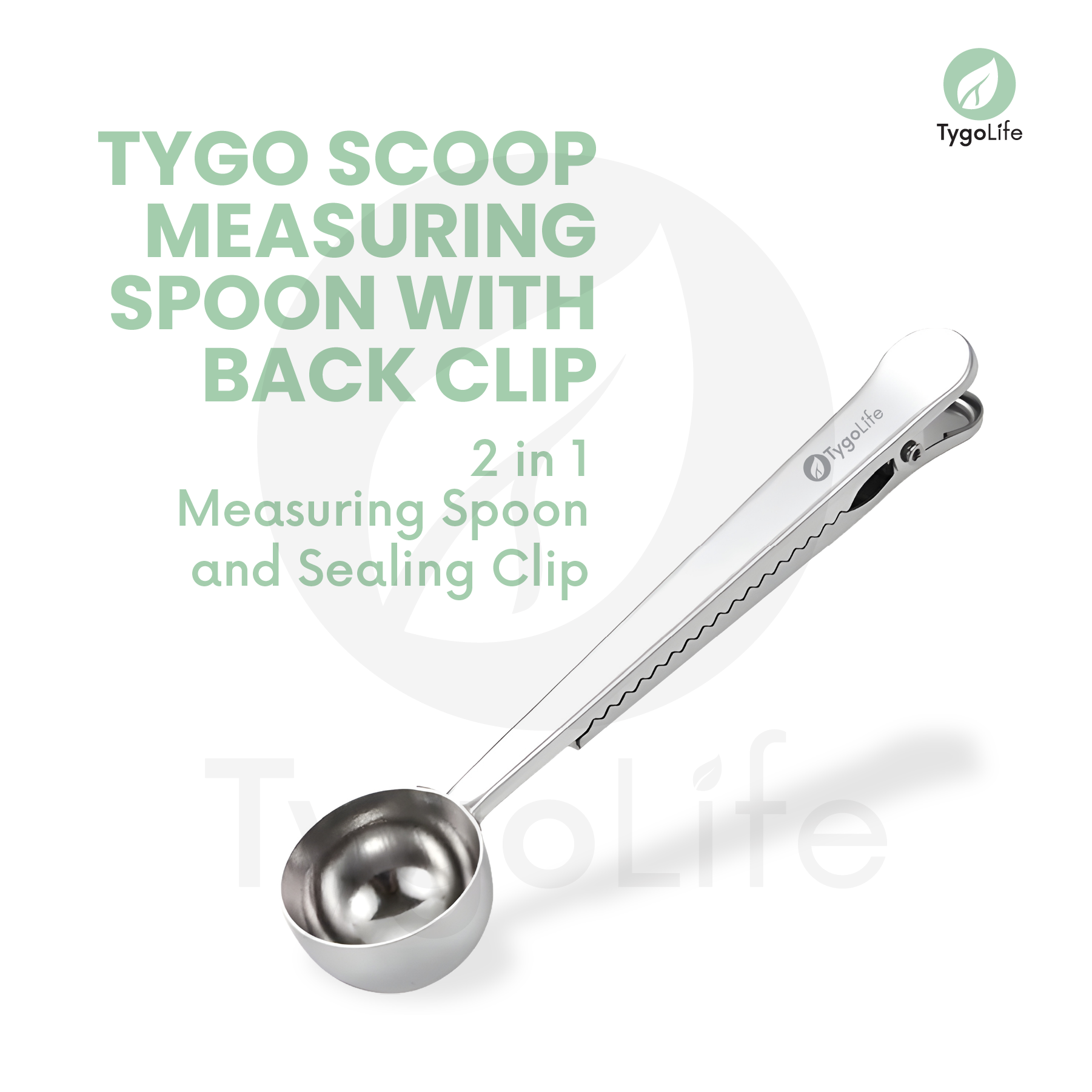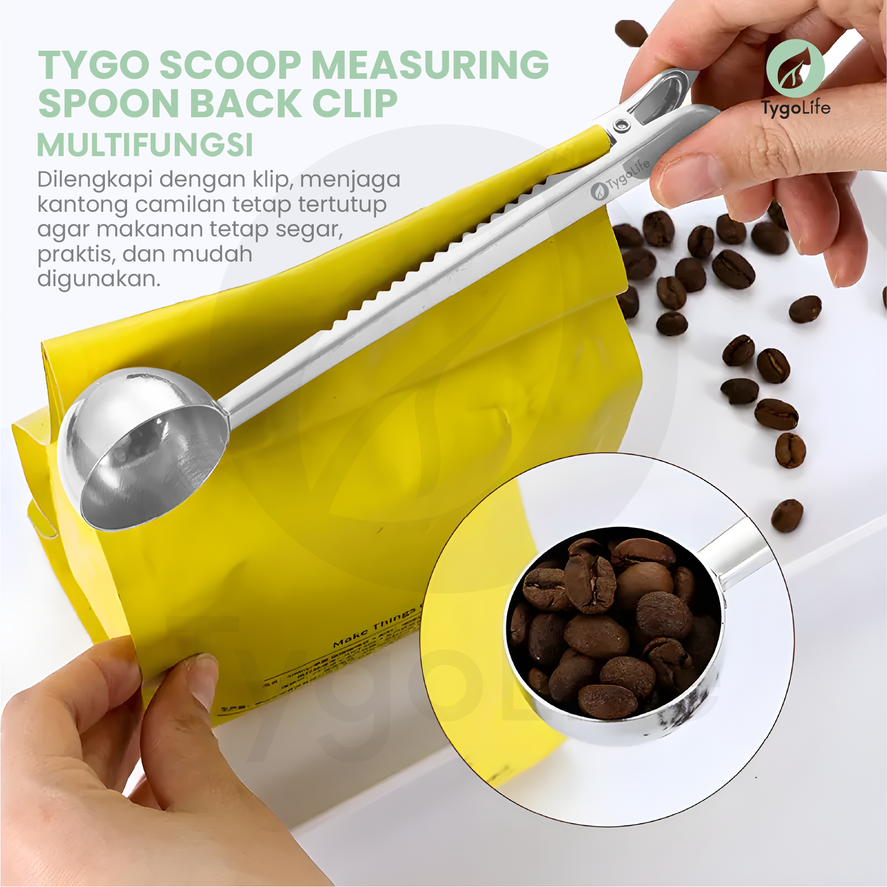 TYGO SCOOP BACK CLIP MEASURING SPOON STAINLESS STEEL COFFEE SENDOK TAKAR KOPI TEH GULA BUMBU DAPUR BUBUK POWDER PENJEPIT BUNGKUS