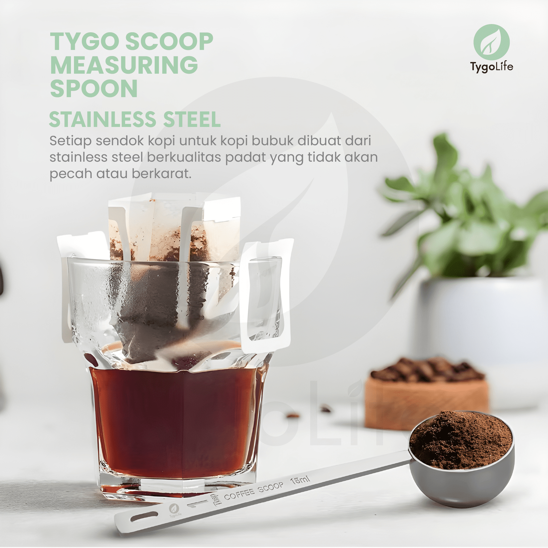 TYGO SCOOP MEASURING SPOON STAINLESS STEEL COFFEE SENDOK TAKAR KOPI TEH GULA BUMBU DAPUR BUBUK POWDER 15ML 30ML