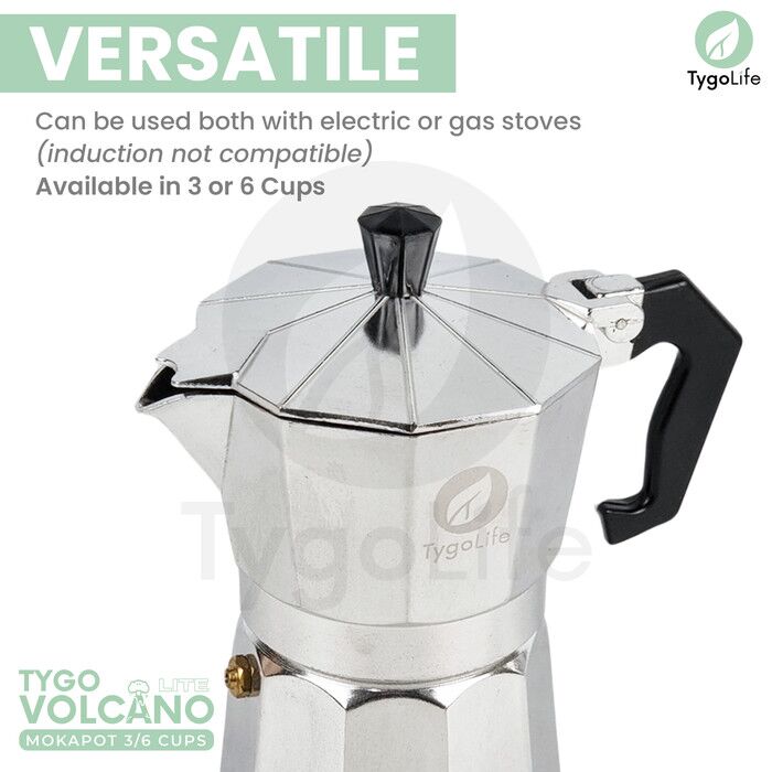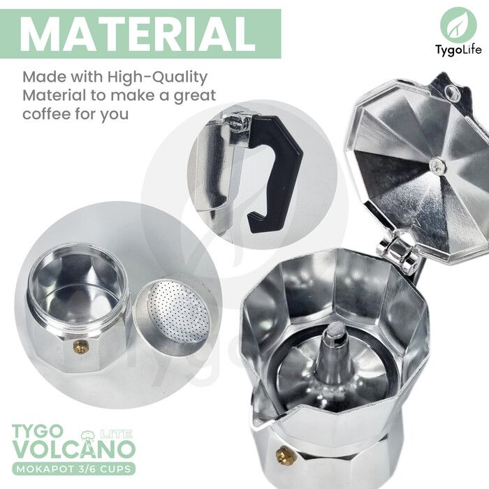 TYGO VOLCANO LITE MOKA POT 3 / 6 CUPS COFFEE ESPRESSO MAKER 150ML 300ML ALUMINIUM